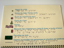 Des éléments en relief apportés par des ajouts de texture optimisent la lecture tactile et offrent aux visiteurs plus de repères. Chaque plan est légendé. L’ensemble est relié dans un livret au format A4 que les visiteurs peuvent emporter lors de leur visite.